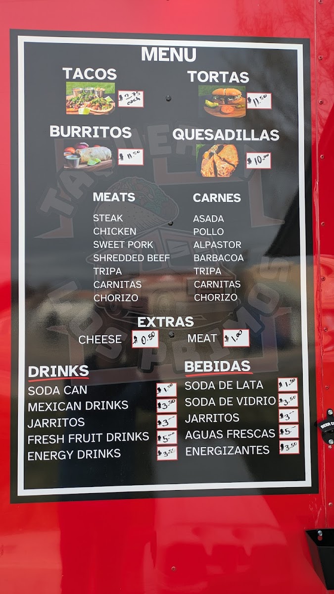 Beyond tacos, the menu features a vibrant selection of Mexican beverages, from classic Jarritos and Aguas Frescas to energizing drinks, complementing the meal with refreshing and traditional flavors. The casual food truck setting emphasizes speedy, friendly service and quality, making it ideal for a quick yet unforgettable bite. Whether craving street tacos or a hearty burrito, Taqueria Los Primos delivers a genuinely heartfelt culinary experience that leaves you eager to return.